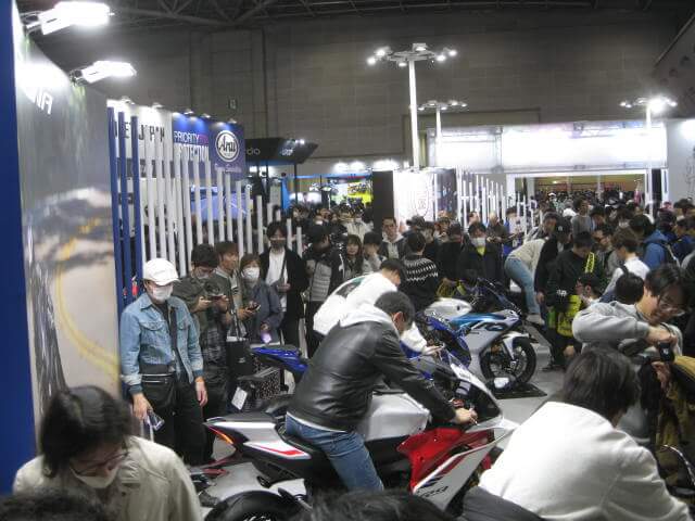 ありがたいことに会場は大盛況で発表前のYZF-R9のまたがり行列がすごいことになっていました!